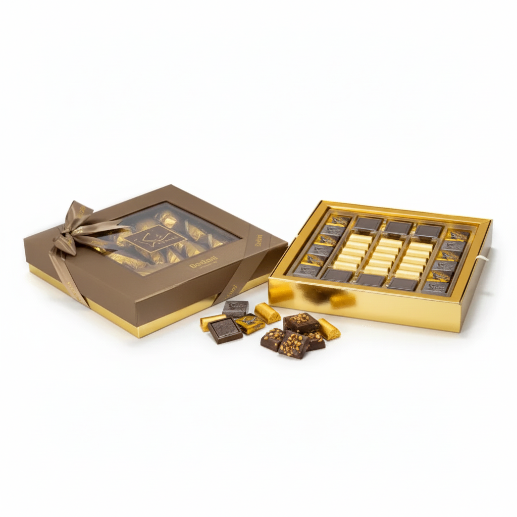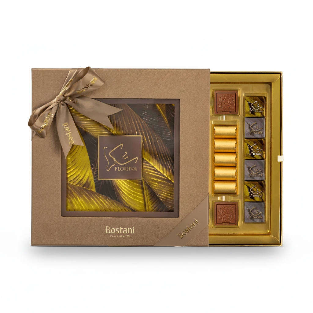 Each of the 66 premium chocolate pieces is meticulously wrapped in soft, subtle leaf-patterned foil, adding a touch of natural beauty and sophistication. Indulge in an abundant assortment of rich biscuit, satisfyingly crunchy nuts, and delightful biscuit with caramel flavors – a diverse and generous selection crafted to please every palate and leave a lasting impression. The unparalleled quality and thoughtful presentation are hallmarks of Floriva products, guaranteeing your appreciation is conveyed with utmost sophistication and style.